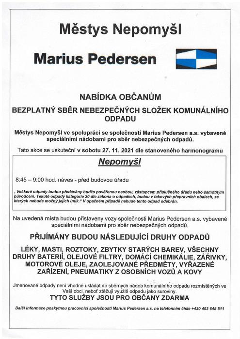 Úvod > Aktuality > Bezplatný sběr nebezpečného odpadu 27.11.2021 v Nepomyšli