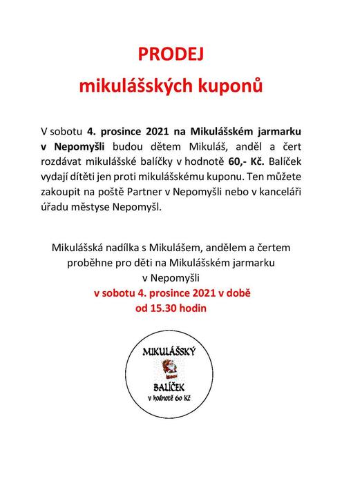 Úvod > Aktuality > Mikulášský jarmark v Nepomyšli 4.12.2021 - prodej mikulášských kuponů