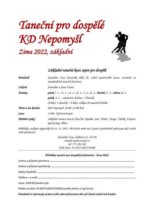Úvod > Aktuality > Taneční kurzy nejen pro dospělé Kulturní dům Nepomyšl