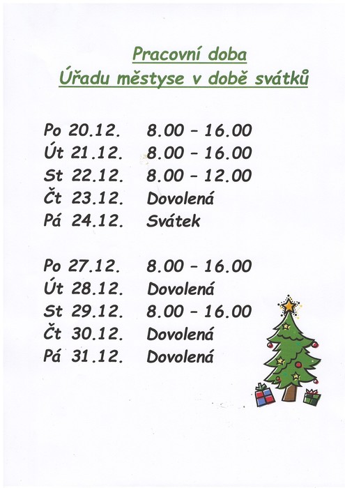 Úřad městyse Nepomyšl - pracovní doba o vánočních svátcích